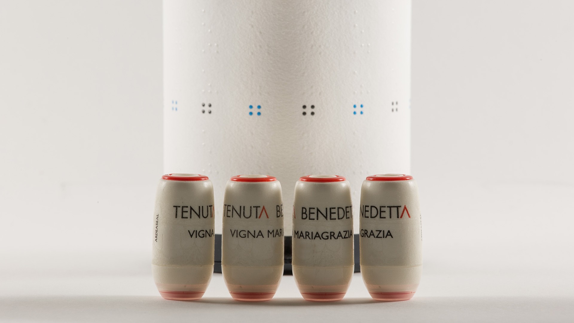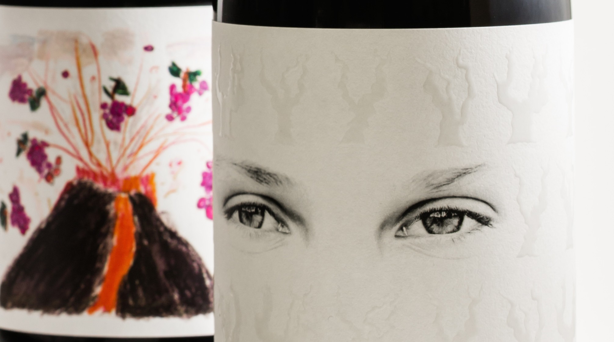 La stessa passione che abbiamo dedicato ai nostri vini la ritroviamo nel packaging. I punti fondamentali da cui siamo partiti sono i nostri valori e il territorio. Abbiamo fotografato e disegnato gli alberelli centenari di Vigna Laura sull'etichetta e sulla scatola; poi ci sono gli occhi di Benedetta, a custodia dei vigneti. Da sempre considerati lo specchio dell'anima, gli occhi rappresentano anche la cura, l'impegno e l'amore che dedichiamo al nostro lavoro, sigillo di garanzia per i clienti. L'etichetta con il vulcano, disegnata dal nostro "piccolo-grande amico" Marco Agnoletti, è un'edizione speciale di 1074 bottiglie di Vigna Laura 2014 il cui ricavato dalla vendita sarà interamente devoluto in beneficienza. L'etichetta del bianco Vigna Mariagrazia 2015 è dedicata alla memoria di mia madre alla quale piaceva solo il vino bianco. Sull'etichetta si intravede una leggera trama di puntolini, che celano il nome Mariagrazia nel formato Braille ripetuto dieci volte in verticale. La confezione, infine, sintetizza i tre sensi attraverso cui apprezzare il vino: vista, olfatto, gusto.
